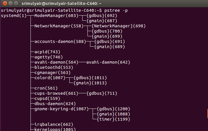 - Opsi p digunakan untuk melihat semua PID : pstree –p